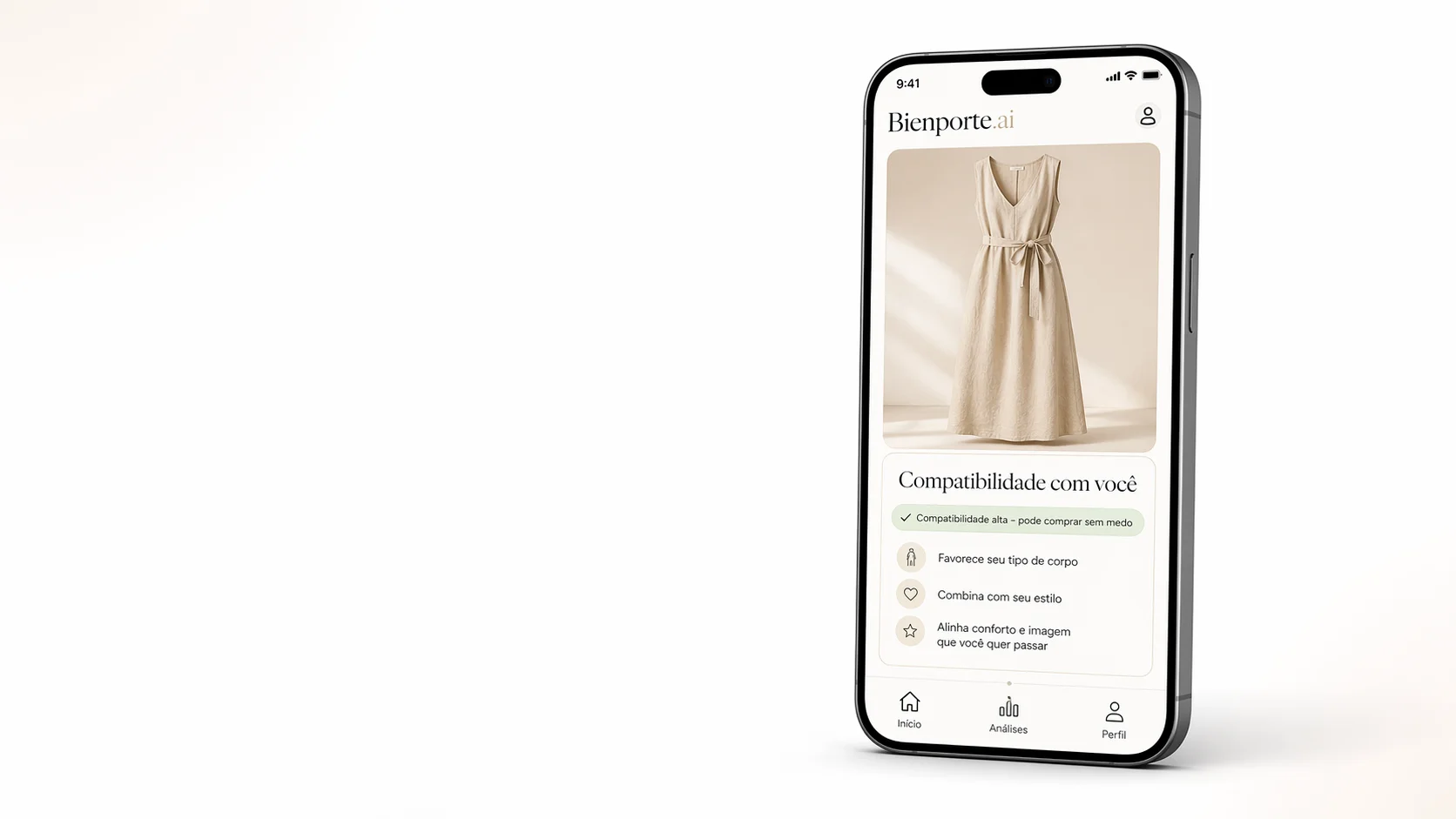 O Bienporte analisa qualquer peça antes de você comprar — e te diz com honestidade se funciona pro seu corpo e pro seu estilo.